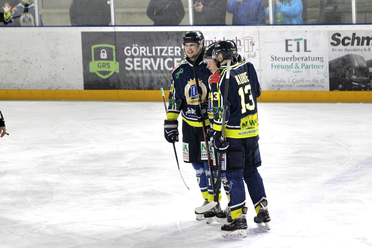 Die Anfangsphase war geprägt von viel Körpereinsatz, kleinen Reibereien und diesem typischen Derby-Tempo, bei dem man kaum Zeit findet, durchzuatmen. Die Nieskyer fanden etwas früher in ihren Rhythmus und belohnten sich kurz vor Drittelende: Falk Perschmann verwertete in der 18. Minute einen feinen Pass von Daniel Höher und brachte die Reserve mit 1:0 in Führung. Ein wichtiger Treffer, der dem Spiel der Hausherren Sicherheit gab.